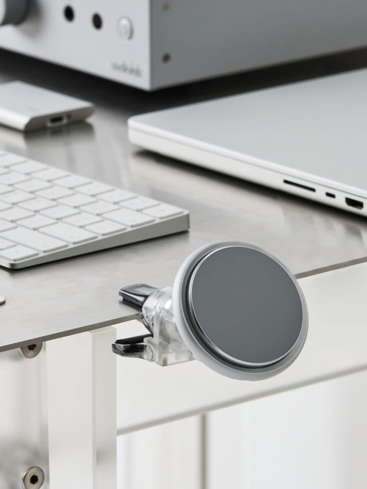 15W高速充電とQi2公式認証による安定したワイヤレス体験。 発熱を抑えるパッシブクーリング設計で完全な静音を実現。 フルアルミユニボディと強力なマグネットアライメントで、洗練されたプレミアム感を演出。